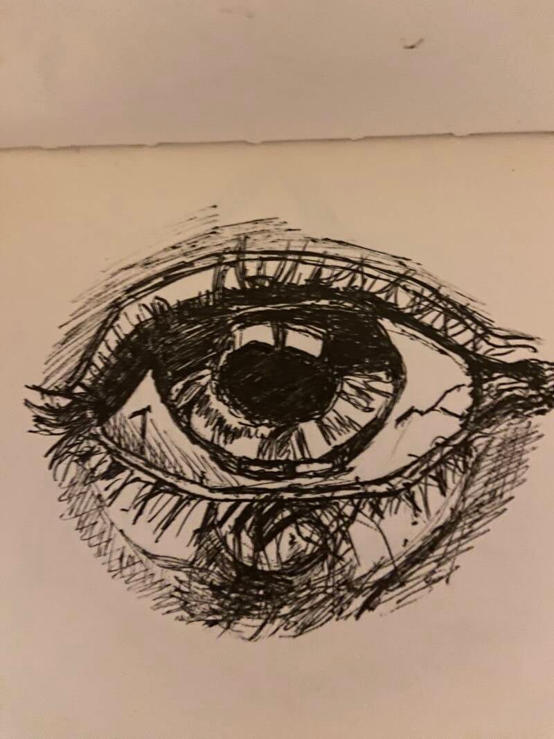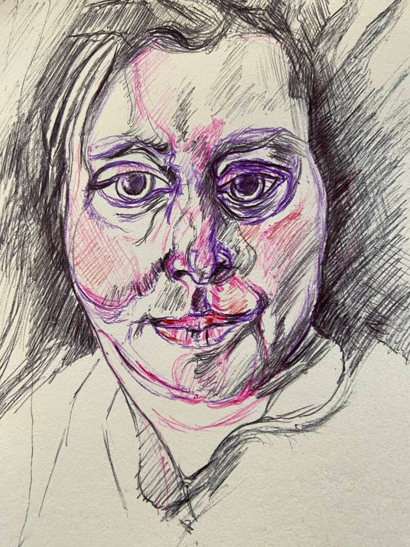 Untitled - self portrait: media used coloured biro blend on A5 paper